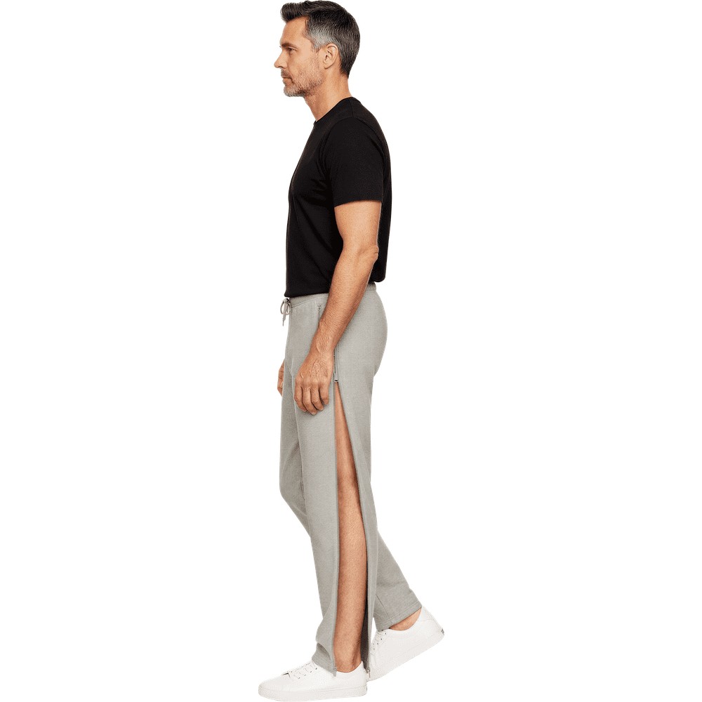 De långa, delbara dragkedjorna längs sidorna gör byxan mycket enkel att ta av och på – även när du sitter ner. Perfekt för vardag, rehab eller när du bara vill ha maximal komfort.