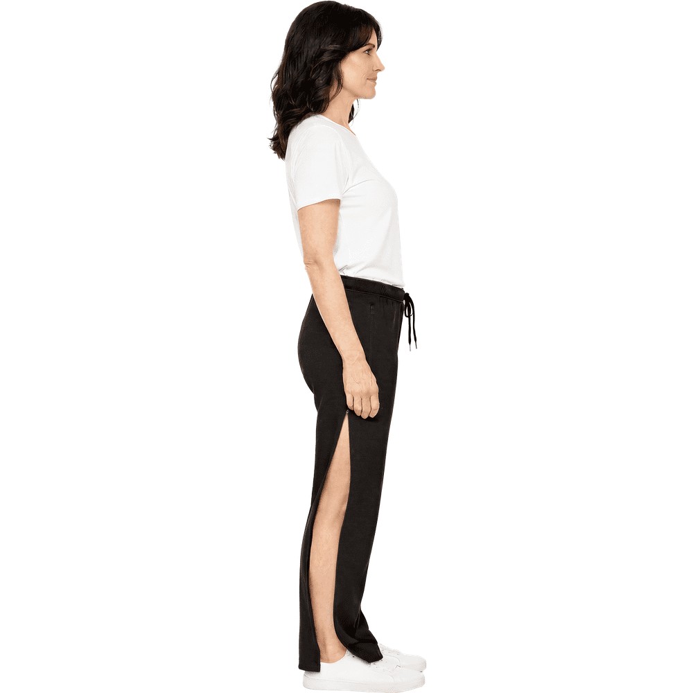 De långa, delbara dragkedjorna längs sidorna gör byxan mycket enkel att ta av och på – även när du sitter ner. Perfekt för vardag, rehab eller när du bara vill ha maximal komfort.